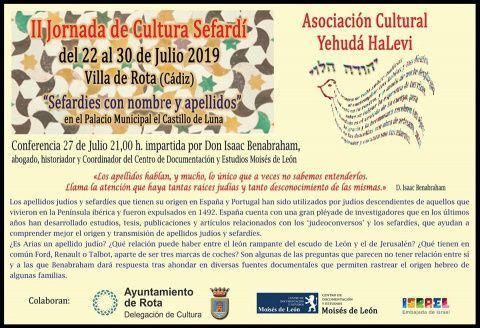 La Jornada de Cultura Sefardí incluye otras citas e iniciativas como la conferencia "Sefardíes con nombre y apellidos", prevista para el 27 de julio a las nueve de la noche en el Castillo de Luna. Esta charla será impartida por Isaac Benabraham, director del Centro de Documentación y Estudios Moisés de León.
