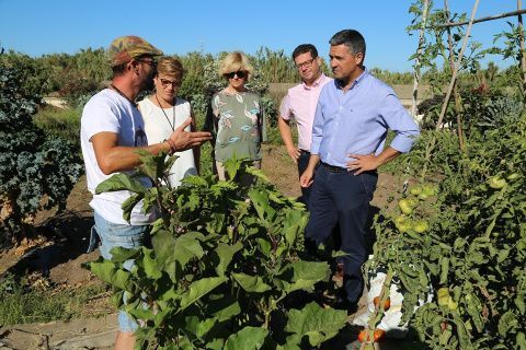 El alcalde de Rota, Javier Ruiz Arana, ha visitado el proyecto de la asociación sin ánimo de lucro "Alma de Tomate", de la mano de su fundador Francisco José Blasco, un apasionado de la huerta, que se dedica al cultivo ecológico de variedades autóctonas de verduras, no comerciales, en Rota.