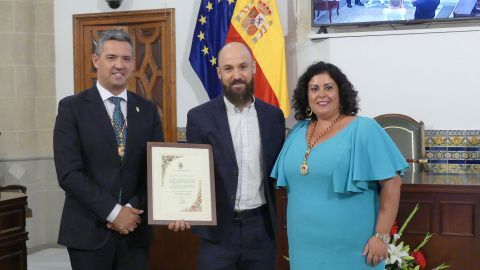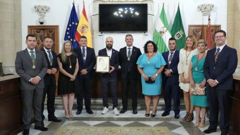Orgulloso y emocionado, el roteño Juan Ruiz-Henestrosa Campos recibía en la tarde de este miércoles el galardón de la Urta de Oro que el Ayuntamiento de Rota otorga a aquellas personas o entidades que ayudan a la promoción de la localidad desde cualquier ámbito.