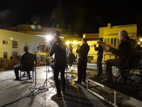 En una plaza Bartolomé Pérez muy concurrida, vecinos y turistas pudieron disfrutar de una noche plácida de jazz de la mano del director de la banda municipal así como de otros artistas locales, entre los que se incluía Antonio "Molina", excomponente de El tren de los sueños.
