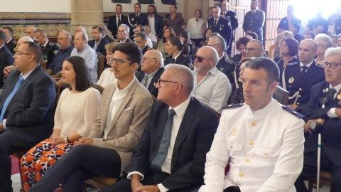 Ante autoridades civiles y militares, una amplia representación de la plantilla de la Policía y la Corporación municipal, el primer teniente de alcalde ha destacado el trabajo de un cuerpo del que ha dicho sentirse orgulloso. Al igual que el alcalde de Rota, Daniel Manrique de Lara ha expresado la necesidad de seguir apostando por facilitar recursos a los agentes que les permita realizar su función de la mejor manera posible ya que ello redundará en beneficio del servicio que se presta a la ciudadanía. El socialista ha recordado que en estos meses se ha mejorado la flota de vehículos, se ha cambiado la uniformidad de los agentes y antes de finales de año se dispondrá de un chaleco antibalas para cada policía mejorando así su seguridad en la calle. Mejoras que tienen que ser continúas entendiendo que hay que seguir apostando por la formación continua, la implantación de las nuevas tecnologías para facilitar el trabajo diario o renovación del armamento. Todo ello, unido a la oferta de plazas convocadas que permitirá reforzar la plantilla con dos oficiales y siete agentes más, decía Daniel Manrique de Lara, hará tener una Policía más competitiva y eficaz en la calle y que la seguridad en Rota esté a la vanguardia.