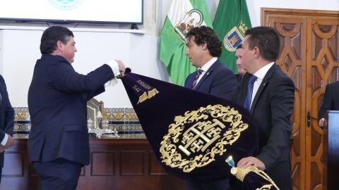 Representantes de las dos hermandades han subido a recoger esta distinción y la colocación de la medalla en el estandarte que las representa y el corbatín. Tanto Aníbal Villalba Puyana, teniente de hermano mayor del Nazareno, como el hermano mayor del Rosario, Juan Antonio Díaz Romero, han dado las gracias a la Policía Local por este gesto con el que vienen a reconocer la vinculación y estrecha relación que existe entre las partes. Rota no se entiende sin su Nazareno y sin la patrona, alcaldesa honoraria de la villa, por lo que es lógico que ambas hermandades reciban y abran paso a esta nueva condecoración que la Policía Local entregará coincidiendo con el día de su patrón. Los representantes de las dos hermandes quisieron además poner en valor el trabajo de los agentes municipales en la calle y el servicio que prestan así como el trabajo altruista que durante años han hecho personas que han llevado a las entidades que representan a la actualidad.