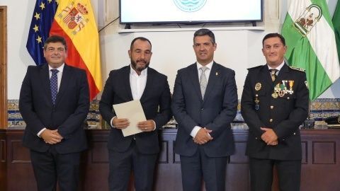 En el capítulo de distinciones aprobadas en Junta de Gobierno Local, hoy han recibido mención los ciudadanos Andrés Barba Nieto y Silvia Alcala Bernal. El primero salvó la vida de un buzo que sufría un infarto en la zona de Los Corrales el pasado mes de junio, y la segunda, atendió de forma profesional y en reiteradas ocasiones a personas que formaban parte del cortejo de la salida extraordinaria de la Hermandad del Nazareno con motivo del 375 aniversario el pasado mes de junio. Ambos han recogido sus distinciones por parte del alcalde de Rota y autoridades.