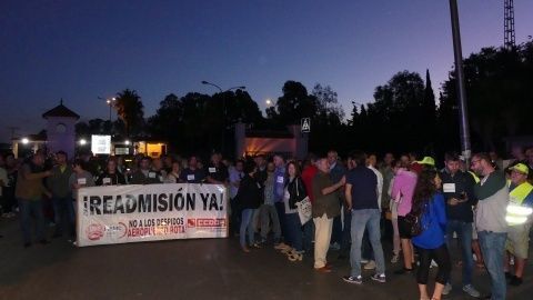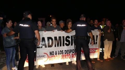 A las 7 de la mañana comenzaban a llegar trabajadores con algunos familiares, políticos y ciudadanos que apoyan al colectivo que lleva denunciando tres años de persecución laboral. En las inmediaciones de la entrada al recinto militar se iban concentrando poco a poco hasta que sobre las 7.20 horas, la pancarta que les acompaña como cabecera en esta larga travesía de enfrentamiento con la concesionaria del servicio del aeropuerto de la Base Naval, se plantaba justo delante del control de la Base. El tráfico quedaba cortado y comenzaba el caos circulatorio inicial que ha provocado largas colas de coches y motos que esperaban para dirigirse a su puesto de trabajo.