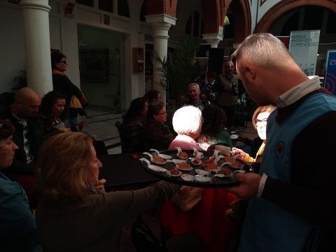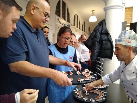 Universo Santi no sólo ha contado con la colaboración del Ciclo de Cocina del IES Arroyo Hondo en la elaboración de tapas y platos, sino también de un grupo de chicos y chicas de la Asociación de Discapacitados de Rota, que han ayudado al restaurante repartiendo entre el público una degustación de las propuestas gastronómicas de Universo Santi.