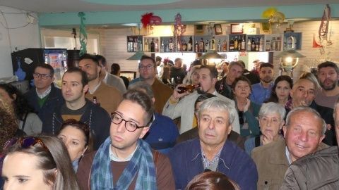 [Img #128249]La nota final la puso la chirigota de Cádiz de José Miguel Choza Camacho que este año se presenta al Concurso de Agrupaciones del Gran Teatro Falla con el tipo "José no te gusta ná". Ellos han abierto boca a los aficionados carnavaleros con su ensayo general que, estando en un acto de la peña cadista, no pudieron evitar empezar con el himno oficioso del Cádiz que todo el público coreó.