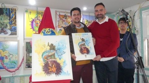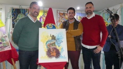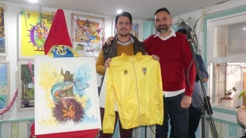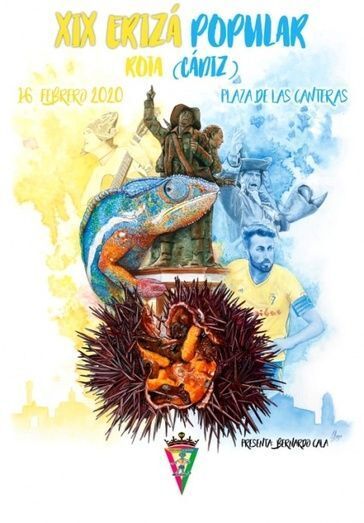 [Img #128239]El autor ha sido Jonathan Alonso, en quien la peña "El Camaleón" confió hace unos meses haciéndole un encargo que hoy han podido ver todos. Un cartel donde predominan los colores azul y amarillo como buen seguidor del Cádiz CF, y donde el cartelista ha incluido varios homenajes. Dado que era un año difícil para él, por las pérdidas de grandes del Carnaval que se han marchado hace muy poco, en su obra los ha querido tener presentes. Como base de la imagen, se puede ver un gran erizo abierto, con un camaleón muy cerca, dos elementos que no pueden faltar en cualquier cartel de esta Erizá que se precie. Completan el dibujo la presencia de dos carnavaleros gaditanos que se han marchado hace meses como Juan Carlos Aragón y Manolito Santander, y homenaje al roteño Francisco Gutiérrez "Guti", cuyo monumento en el paseo marítimo del Rompidillo cumple ahora diez años. El detalle con el deporte y amor por el Cádiz lo representa en esta ocasión José Mari, futbolista roteño del equipo amarillo y capitán del mismo. Una mezcla que el propio autor, que descubría el cartel junto al alcalde de Rota, Javier Ruiz, espera que haya gustado asegurando que él le ha puesto mucha ilusión en confeccionarlo y buscar una idea que diera cabida a sus pasiones, la carnavalera y la cadista.