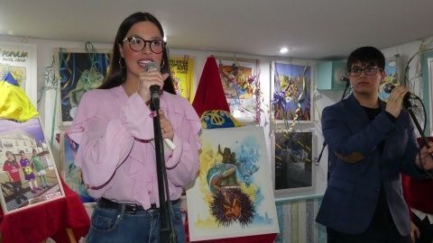 [Img #128213]Además, la peña ha presentado hoy a la ninfa y el atlante que les representará en esta fiesta, Paula Díaz y  Roberto Díaz, que han recibido sus correspondientes bandas de manos de su antecesora, Alicia Salguero.