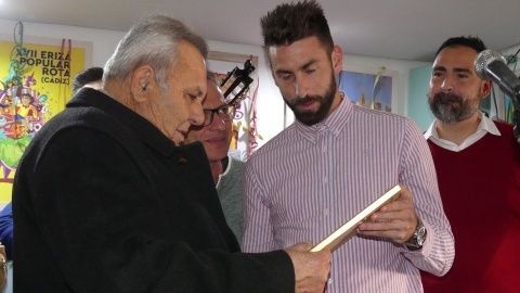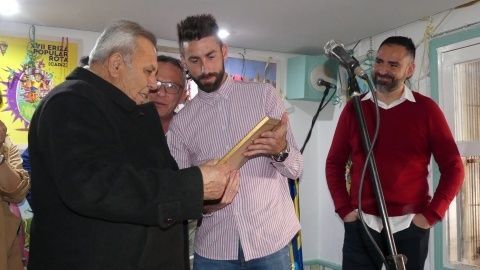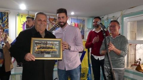 [Img #128222]Pero no ha sido el único homenaje que hoy se ha vivido en el acto de presentación del cartel de la Erizá. Un socio cadista desde hace varias décadas, se llevaba también un reconocimiento de manos de esta peña. José Ruiz González, socio 319 del Cádiz CF de casi 20.000 que son en la actualidad, ha recibido el cariño de esta entidad como ejemplo de fiel seguidor del equipo en los malos y en los buenos momentos, como decía su vecino y expresidente de "El Camaleón", Antonio Rivero. Emocionado, recogía una foto del club que le entregaba el mismo capitán cadista José Mari.