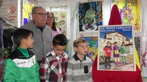 [Img #128204]En realidad, el descubrimiento del cartel, aunque es la parte principal del acto, fue lo último que se hizo. Antes, como siempre, se le da su sitio al deporte base con la presentación del cartel del XIX Trofeo Camaleón "Memorial Julio Durán". La foto, obra del socio Leopoldo Almisas, recoge a tres jugadores de los tres equipos de la localidad, el CD Rota, la UD Roteña y el CD Rosario. Este año, como escenario se ha elegido el paseo marítimo de la Costilla y en concreto, la zona de la conocida como "casita de chocolate" porque como decía el propio autor, los monumentos se están acabando dado todas las ediciones ya celebradas. Este cartel es además de una apuesta por el deporte base, un homenaje a uno de los socios más queridos de esta peña, Julio Durán, al que le dedican el trofeo cada año recordando su pasión por el fútbol y el Cádiz CF.