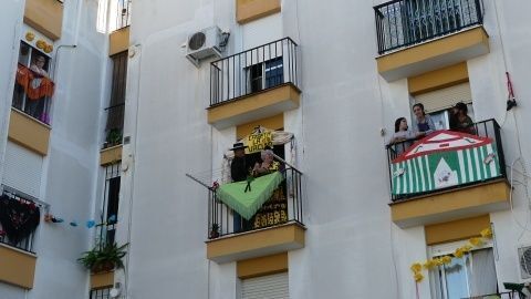Los roteños no se resisten y en estos días en los que muchos estarían disfrutando de la Feria de Primavera de Rota que tenía como fecha del 29 de abril al 3 de mayo, tiran de ingenio y ganas para celebrarlo en casa, desde las ventanas y balcones.