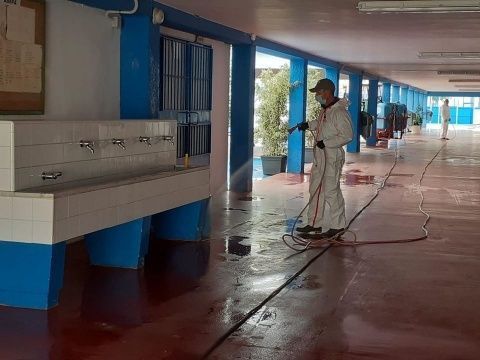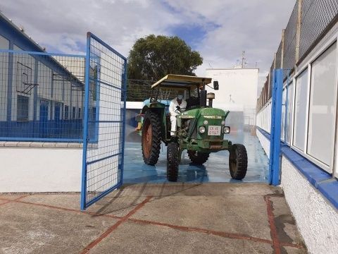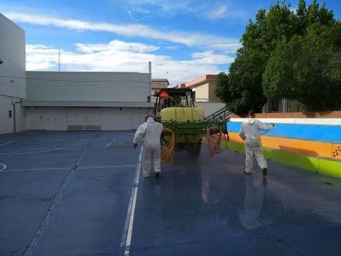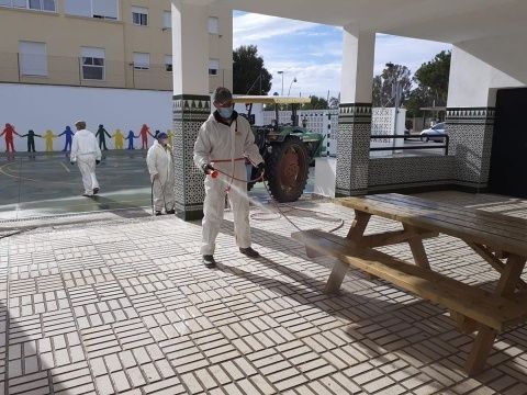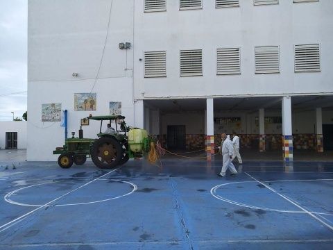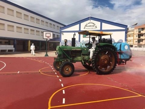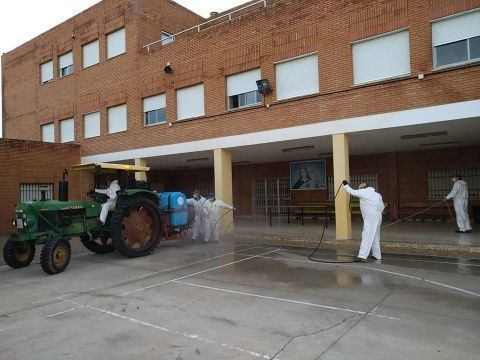 Los centros educativos se desinfectan para su reapertura con ayuda de los agricultores