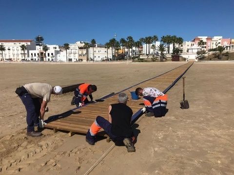 Tal y como ha explicado el delegado de Playas, aunque los trabajos para preparar las playas se han visto también afectados por las limitaciones de actividad del estado de alarma, el Ayuntamiento de Rota lleva ya varias semanas trabajando a marchas forzadas en la colocación de pasarelas y puesta a punto de instalaciones, megafonía, etc., para que las playas estén listas para acoger a usuarios, en cuanto el proceso de desescalada así lo permita. No obstante, no se procederá a la apertura de la temporada oficial de playas hasta que no esté perfectamente asegurado por parte de la administración competente, que se cumplen todas las medidas de seguridad sanitarias para dicha apertura.