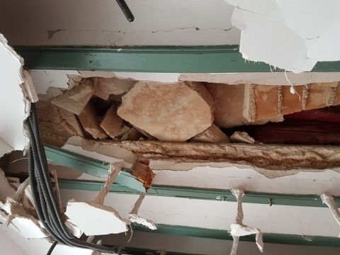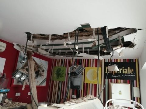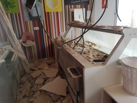 [Img #133780]El derrumbe del suelo de la azotea del número 2 de la calle Pérez de Bedoya que se produjo sobre las 3 de la  pasada madrugada y causó daños en la vivienda de la primera planta y en el local comercial de la planta baja, ha dejado importantes daños estructurales al punto de que la heladería que se preparaba para abrir sus puertas la próxima semana con la llegada de la temporada alta, no podrá hacerlo. Es más, a lo largo de esta mañana, y en vista de la situación, tal y como ha manifestado a este medio su propietario, ha desalojado el local ante el temor de que su maquinaria corra aún más peligro y daños de los que ya ha sufrido el local que se ha visto seriamente afectado.