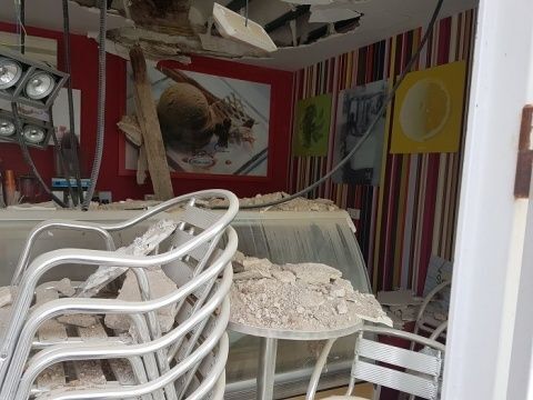 Los daños estructurales son importantes y mucho teme, aunque es una suposición sin confirmar, que la finca al completo pueda llegar a derribarse por precaución. Él por si acaso y ante la recomendación de ni siquiera entrar en el local hasta no conocer la situación del edificio, ha decidido actuar rápidamente sacar a toda prisa el material que tenía preparado para afrontar la temporada de verano y tomar la decisión de no abrir sus puertas en este 2020.