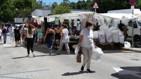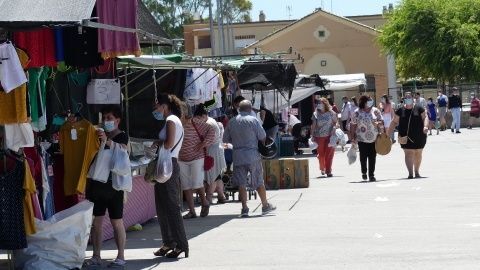 Había ganas de mercadillo y se ha notado en este primer miércoles en el que los vendedores ambulantes han podido volver a colgar de sus tenderetes bañadores, zapatos, manteles, sábanas, ropa interior, vestidos, bolsos y una amplia variedad de artículos tras haber estado más de tres meses sin actividad.