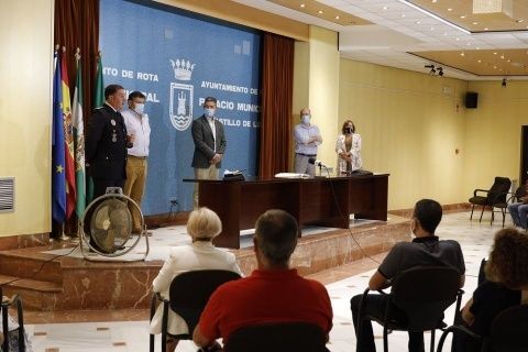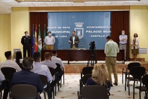 Esta mañana, se les ha dado la bienvenida por parte del delegado de la Policía del Ayuntamiento de Rota, Daniel Manrique de Lara, y por el jefe de la jefatura en Rota, Manuel Muñoz, que han animado a los siete policías a sacar el mayor provecho de estos meses de formación que aún les queda para acceder a la escala básica de la Policía Local. En el acto también ha estado el alcalde de la localidad, Javier Ruiz.