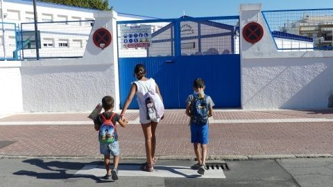 La vuelta al cole este año está rodeada de incertidumbre y cierto miedo por la pandemia del coronavirus. Hoy, el reencuentro con los compañeros de los que se despidieron en marzo, cuando se inició el estado de alarma, no ha sido como otros años. Había algarabía y ruido en la puerta de los colegios, pero no la de otras veces. Unas señales en el suelo han indicado en muchos centros educativos por dónde debía circular el niño hasta llegar al aula, previa espera en el patio en unas marcas pintadas con la mejor voluntad de los equipos docentes. Nada de ir cada uno a su ritmo.