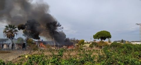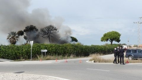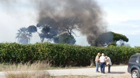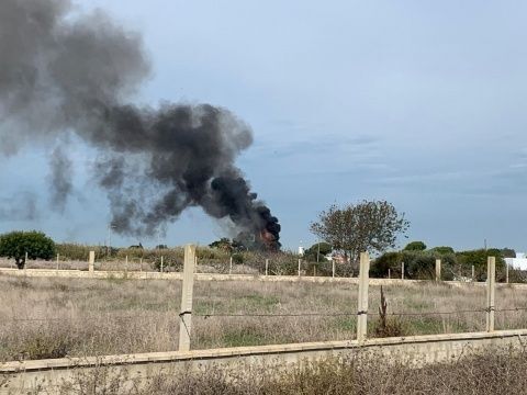Sobre las 11.30 horas, un incendio se ha desatado en una parcela situada en la zona de Peginas, en el término municipal de Rota, provocando una gran columna de humo negro que se ha podido visualizar desde varios puntos del municipio y de la carretera, dada su altura.
