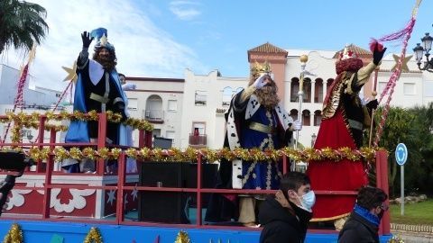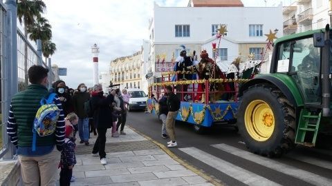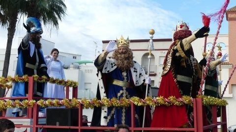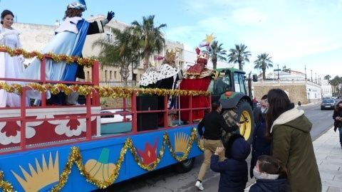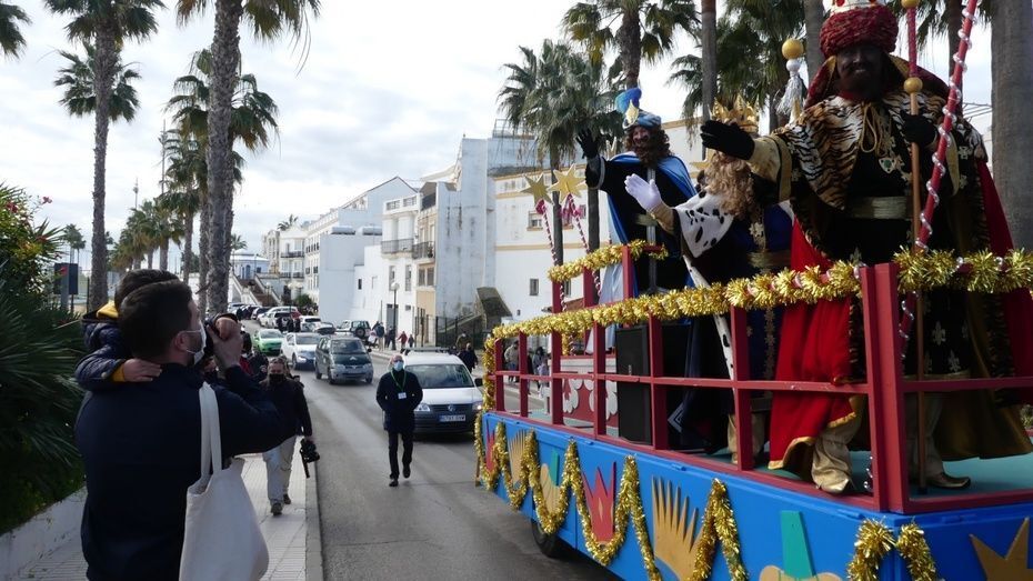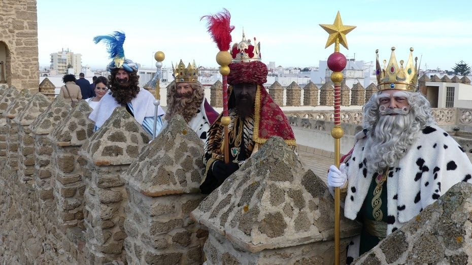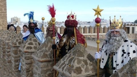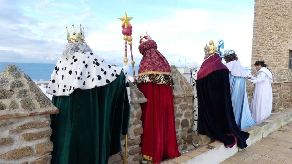 Los Reyes Magos ya han llegado a Rota. A las 10 de la mañana hacían su primera parada en el Castillo de Luna para saludar desde las almenas a los pocos niños que se han acercado hasta este punto antes de iniciar un recorrido en carroza que los llevará sobre as 11.30 al parque "Laguna del Moral" donde pasarán todo el día de hoy.
