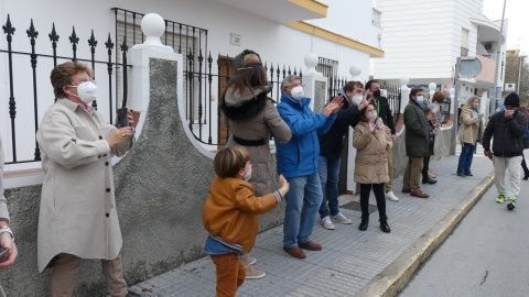 Han sido solo unos minutos pero en las caras de Melchor, Gaspar, Baltasar, el Cartero Real y la Estrella de la Ilusión, y en la cara de los abuelos que por la ventana se han asomado para saludarlos, se ha visto la emoción del momento junto a varios ciudadanos que estaban en ese punto. Un aplauso espontáneo ha arrancado para dar fuerza y ánimo a estos abuelos, uno de los colectivos más vulnerables por el coronavirus y que más aislados han tenido que pasar los meses de pandemia para proteger su salud.