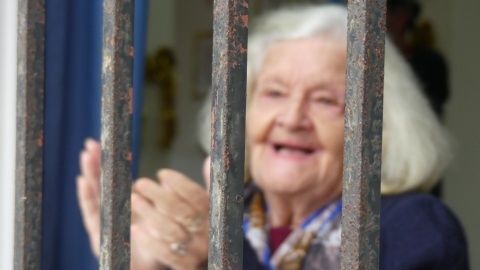 Que triste tener a nuestros mayores encarcelados entre barrotes sin poder salir a la puerta. Cumpliendo condena por una sociedad falsa, hipócrita e insolidaria.