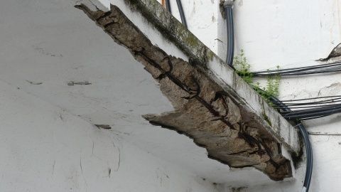 La preocupación no solo viene por los vecinos que viven en el edificio, gente mayor, con una media de 70 años cuyas capacidades de movilidad están bastante restringidas, sino porque al caer a la vía pública, puede provocar daños en cualquier persona que pase por allí. No solo algunos voladizos están en mal estado, también, en los descansillos de bloques como el número 8 se puede ver que la humedad y la antigüedad de esas edificaciones han ido haciendo mella hasta el punto de verse igualmente las estructuras de acero que debería tapar el hormigón.