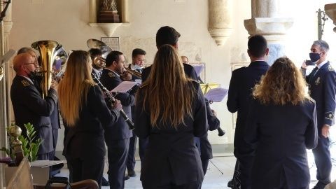 En el acto de inauguración de hoy, en el patio del Castillo de Luna, la banda municipal de música "Maestro Enrique Galán" se ha encargado de nuevo de poner la nota musical a un evento que es antesala de una Semana Mayor distinta. En él, han tomado la palabra, aunque de forma muy breve, algunos de los protagonistas de estas dos exposiciones que han dado las gracias al Ayuntamiento de Rota por la oportunidad de poder ver expuestos estos enseres y fotografías.