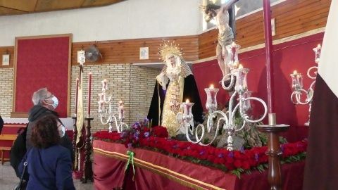 [Img #144115]Es un Lunes Santo diferente, en parte algo triste, manifestaba la hermana mayor a este medio, que reconocía tener los sentimientos a flor de piel, echando de menos poder colocarse su túnica y acompañar a su Esperanza del Calvario, La crisis sanitaria impide que se pueda realizar la estación de penitencia así que lo único que pueden hacer es acompañar a sus titulares colocados en un lateral de la iglesia donde permanecerán hasta el Viernes Santo por la noche, momento en el que el Cristo del Amor y la Esperanza del Calvario dejarán paso al Jesús Resucitado.
