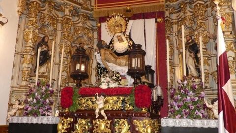 Nuestra Señora de los Dolores con el Cristo de la Caridad en su regazo luce espléndida en esta ermita que se podrá visitar en este Jueves Santo desde las 11.30 a las 15.30 horas y de 18.00 a 22.00 horas.