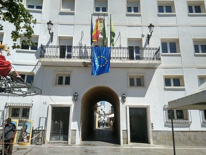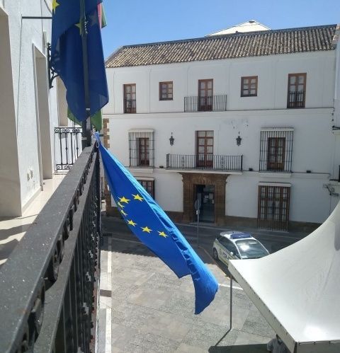 Con motivo de la conmemoración hoy, 9 de mayo, del Día de Europa, el Ayuntamiento de Rota ha colocado varias banderas de la Unión Europea que ondean ya en la plaza de España, la plaza de San Roque, el Castillo de Luna y el parque "Laguna del Moral".