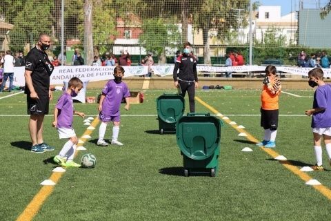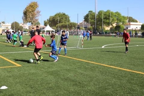 Unos 200 niños en las categorías alevín, benjamín y prebenamín masculino y femenino de distintos clubes d ela provincia, entre los que se encuentran la U.D. Roteña, el C.D. Rota y el C.D, Rosario han participado esta mañana en las distintas actividades, juegos y pruebas de habilidad personal, de habilidades técnicas, tiro a portería, conducción de balones, etc. que componen el evento "Reto supérate", organizado por la Real Federación Andaluza de Fútbol.