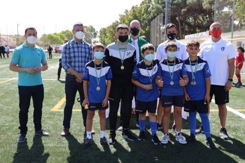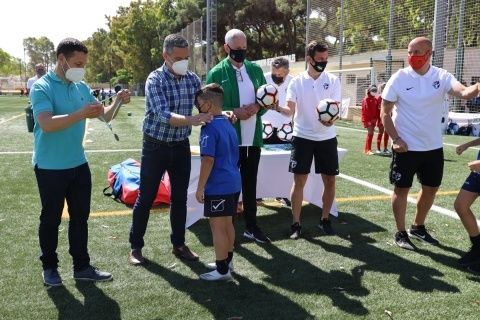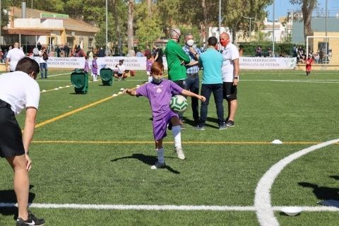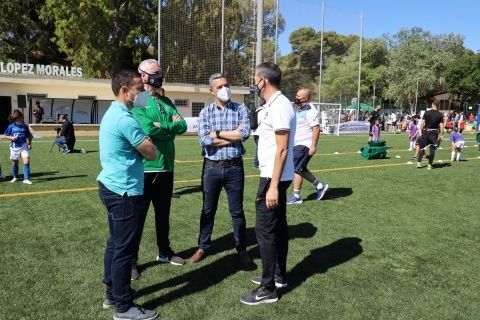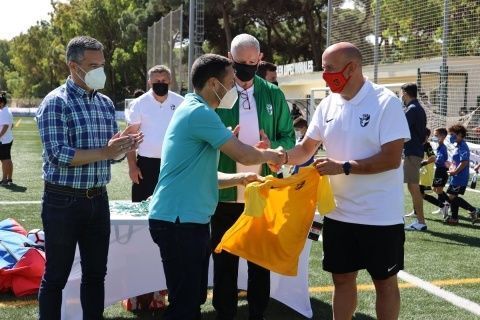 Además, el primer edil y el delegado de Deportes también han participado junto con el presidente de la Federación Andaluza de Fútbol en Cádiz, Antonio Bernal, el técnico de la Federación Española de Fútbol, Pedro Curtido, y el director deportivo de la RFAF, Martín Torralba, en una de las entregas de medallas y obsequios que se ha llevado a cabo a lo largo de esta mañana.