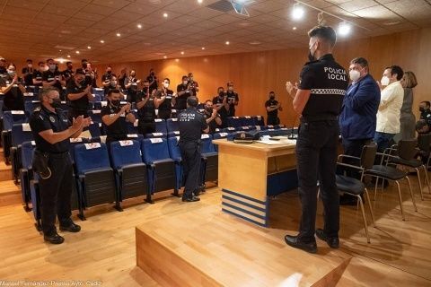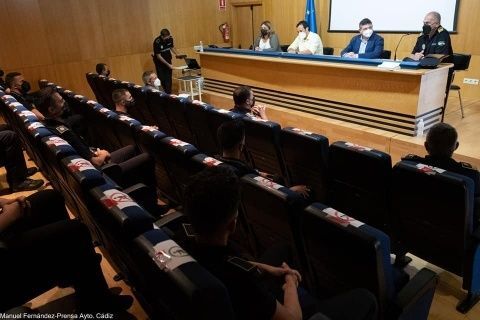 El alcalde de Cádiz, José María González, y la alcaldesa de Puerto Real, Elena Amaya, junto con los jefes de Policía Local de ambos municipios y el director de la Escuela Concertada, Superintendente, Juan M. Padilla, participaron en este acto en el que se entregaron diplomas a un total de 26 agentes de Rota, Puerto Real y Cádiz.