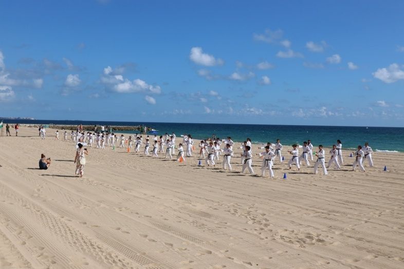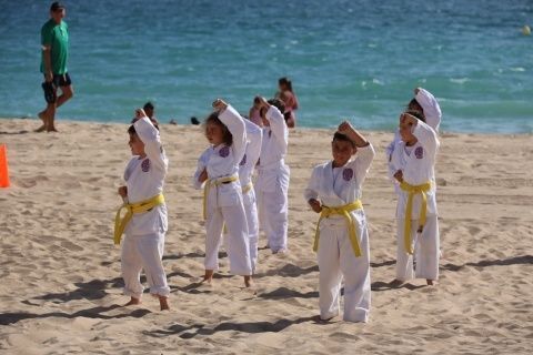 La playa del Caracol acogió los exámenes de fin de curso de los alumnos de la escuela de kárate