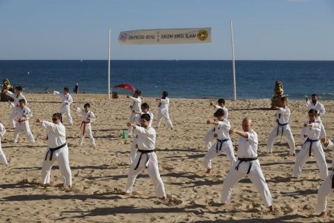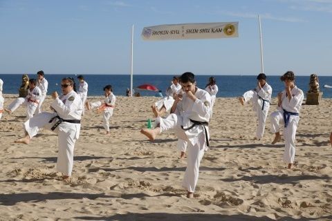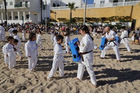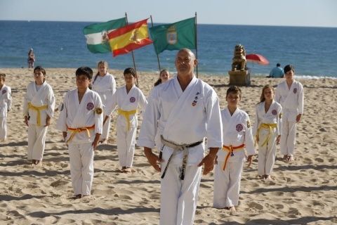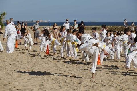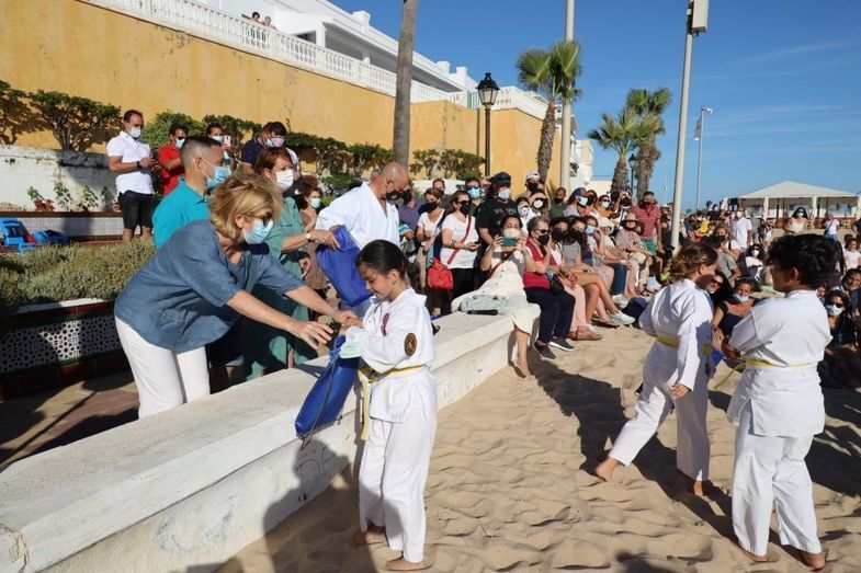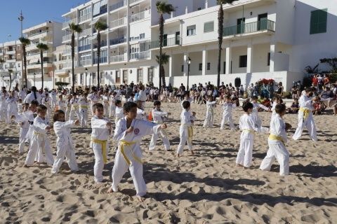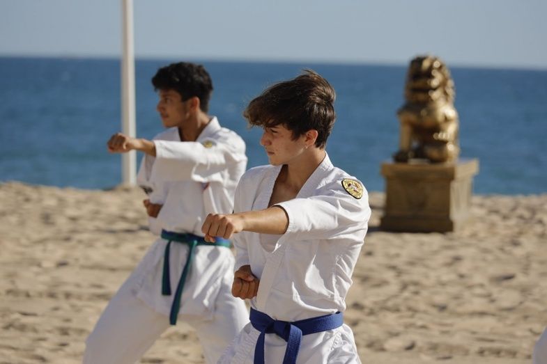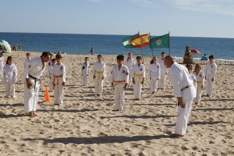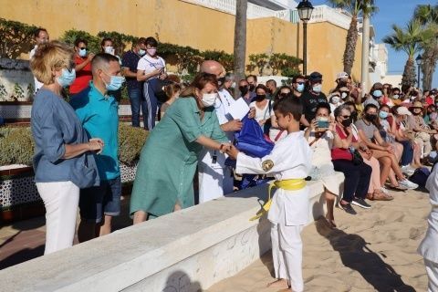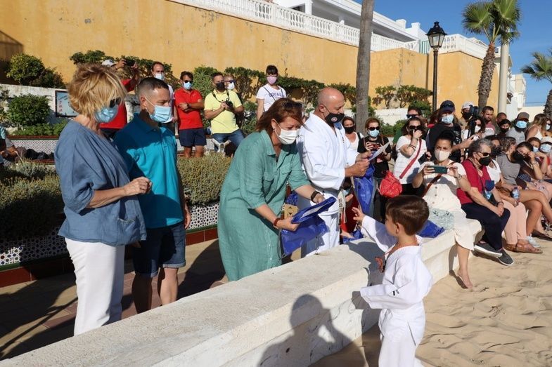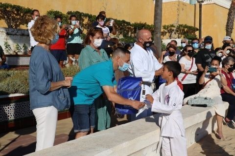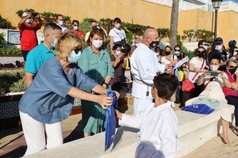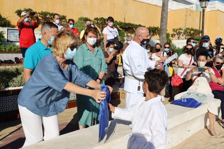La asociación Okinawa Shorin Ryu celebró ayer miércoles el fin de curso con su alumnado. Lo hizo con una exhibición de todo lo aprendido por parte de los participantes, así como con el acto de entrega de diplomas en el paseo marítimo y la playa de la Costilla a la altura de Villa Marciala, donde se encuentra la placa dedicada al entrenamiento de las artes marciales.