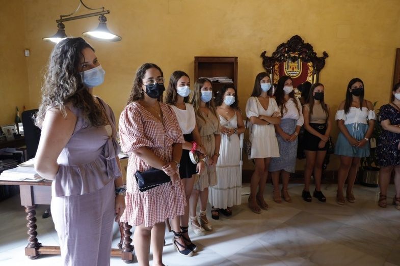 Esta mañana, el alcalde de Rota, Javier Ruiz Arana, ha recibido en el Castillo de Luna a las 15 damas del Rosario que este año representan a peñas y entidades de la localidad, y al exaltador de las fiestas patronales, Juan Antonio Díaz Romero.