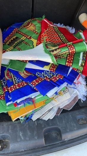 Maryam cuenta a Rotaaldia.com que con la colaboración de su familia en la ciudad ceutí, especialmente de su suegra que tocó muchas puertas, de comercios de la zona y de amigos y personas que sin preguntar, donaron lo que pudieron, han sido capaces de llenar una furgoneta hasta los topes que ayer jueves descargaron sobre el mediodía en la iglesia de la Base Naval de Rota con 2.800 artículos para los afganos. Entre las cajas y bolsas que ya traían desde casa previamente clasificadas por tipología y tallas para facilitar el trabajo de distribución de los voluntarios, había un poco de todo: ropa interior de hombre, mujer y niño, calcetines, biberones, chanclas para la ducha, chupetes o pantalones, pero si algo traía con especial ilusión este matrimonio porque sabía que así lo iban a recibir los afganos, era ropa típica de hombre, pañuelos ('hiyab') para las mujeres, pines para los hiyab y mantas para rezar.