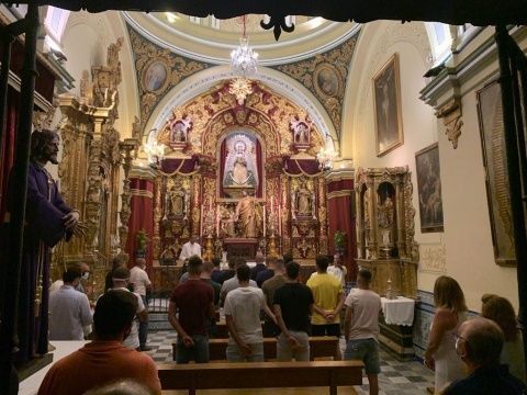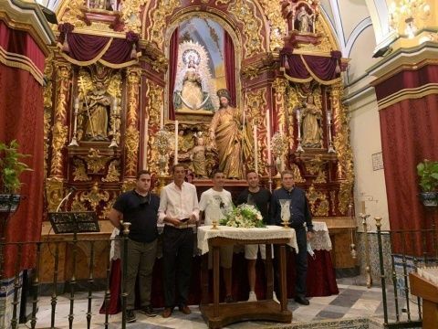 Directivos, jugadores y cuerpo técnico del primer equipo así como algunos aficionados, participaron en este sencillo acto que tuvo lugar en la tarde noche del pasado viernes. Fue el hermano mayor de la Hermandad del Rosario, Juan Antonio Díaz Romero, el que dio la bienvenida a la comitiva en la capilla en la que está la patrona a la que se encomendaron con el deseo de tener una buena temporada. Precisamente, una alusión a la virgen del Rosario estará este año presente en la camiseta de los jugadores que lucirá la ráfaga que se ha incluido como detalle, tal y como comentó el presidente del CD Rota, Juan Luis Rendón.