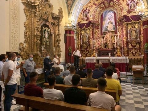 Un acto sencillo, que cumple con una tradición de décadas y que terminó con el rezo de la Salve con la petición de que la virgen proteja a los jugadores en esta temporada que está a punto de comenzar para el CD Rota.