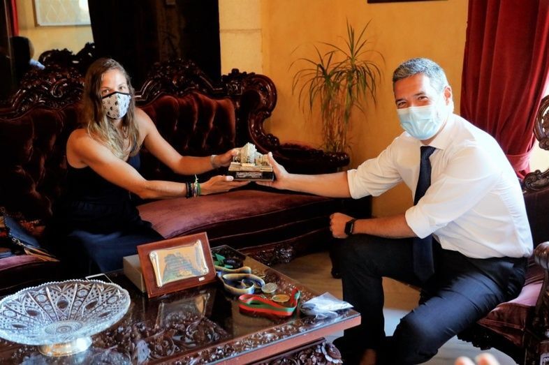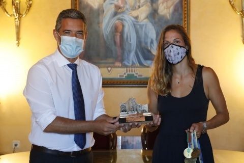 La deportista roteña Gema Sánchez Bernal recibió en el día de ayer la felicitación en persona del alcalde de Rota, Javier Ruiz, y del delegado de Deportes, José Antonio Medina, en una recepción oficial que tuvo lugar en el Palacio Municipal Castillo de Luna.
