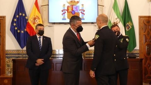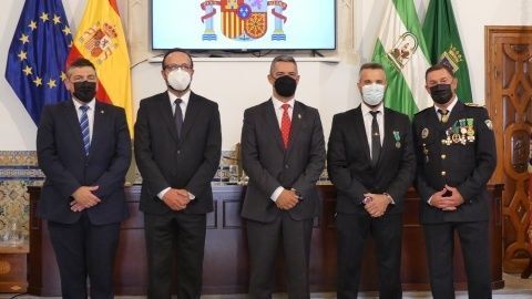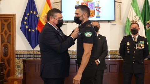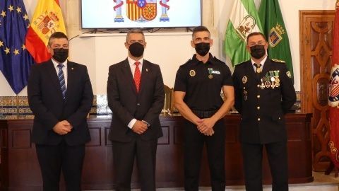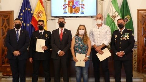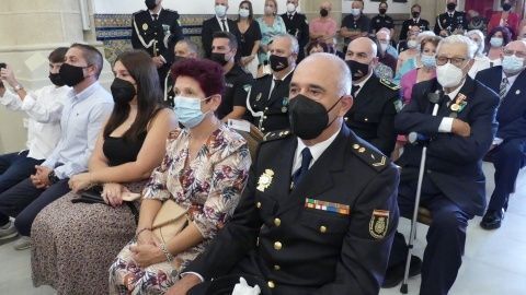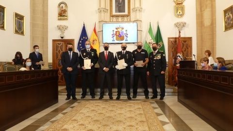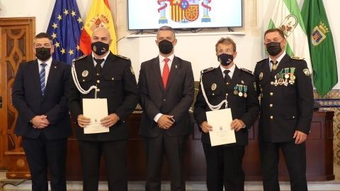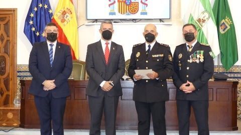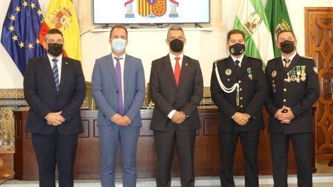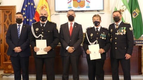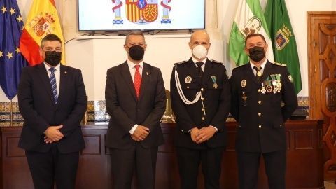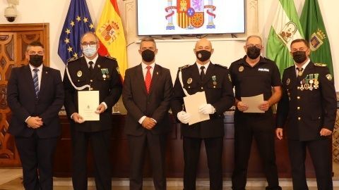 La Medalla al Mérito Policíal, que viene a distinguir la trayectoria al servicio de este cuerpo, recayó este año en José Miguel Luque Pizarro y Juan Montesinos Chaves, mientras que la distinción homenaje a los policías jubilados durante 2021 fueron para José Miguel Luque Pizarro, Santiago Basset Madueño, José Luis Casanova Bernal y Manuel Barba Ortiz.