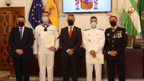 En el turno de condecoraciones y reconocimientos, el acto empezaba por los que se aprobaban en Junta Local de Gobierno a ciudadanos que con su implicación lograron auxiliar a otros. Fue el caso de Manuel Marín Mejías, que socorrió a una bañista en la playa de Aguadulce que se estaba ahogando. Su reanimación y reacción le salvó la vida. Un sanitario que mostró en horas fuera de servicio su compromiso con la ciudadanía. Recogía la misma distinción José Manuel Barba Linares porque también el pasado verano ayudó a una pequeña de 5 años que se había atragantado a que expulsara la comida que casi le hace perder la vida. Él estaba fuera de servicio pero no dudó en socorrerla con final feliz. También se ha reconocido la labor de todos los policías y miembros de otros cuerpos como Protección Civil o la Armada que ayudaron en el incendio de la calle Castelar en el mes de agosto para que todos los medios coordinados llegaran y aquella tragedia no fuera a más. En este apartado, han sido distinguidos los policías locales Juan Carlos Marín Palacios, Manuel Barba Ortiz, Rafael Cuadro García de Quirós, José María Pérez Raffo, Manuel García Laynez, Antonio Real Caro, Javier García Caballero, Miguel Ángel Pazos Santamaría, Marco Antonio Trujillo Macías y Jesús Villalba García. Por su actuación en este mismo suceso, recibieron distinción los integrantes de Protección Civil, Manuel Pérez de la Lastra Pastor, Anabel García Carrascal, Enrique Veira Rosado y Jesús Lobato Martínez.
