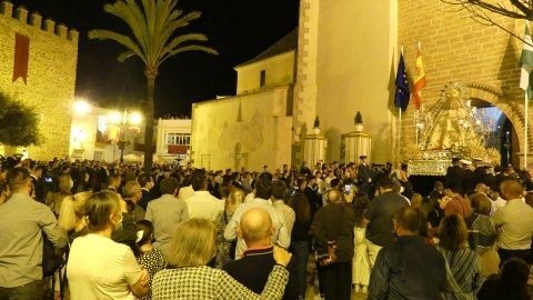 Nuestra Señora del Rosario terminaba su salida procesional llegando a la parroquia de Nuestra Señora de la O pasadas las 23.30 horas, aunque no ha sido hasta la medianoche cuando ha entrado en capilla después de lucirse en una plaza Bartolomé Pérez que esperaba llena de público para despedirla el día de su festividad.