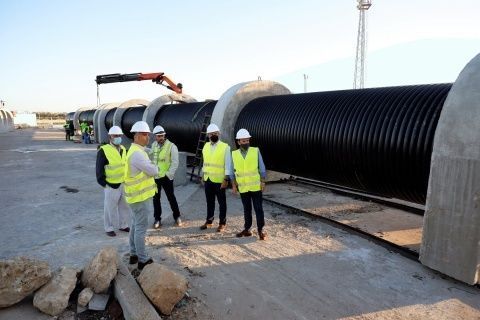 Como ya se explicó en su día, la circulación de la acumulación de aguas pluviales a través del alcantarillado se efectuará gracias a esta tubería de polietileno de 1,80 metros de diámetro con lastre de hormigón. Una vez finalizada la obra se trasladará por mar desde El Puerto de Santa María hasta la playa de la Costilla mediante una operación de transporte marítima.