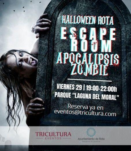 El viernes 29 de octubre de 19.00 a 22.00 horas, "el apocalipsis llegará a Rota, sois los últimos supervivientes y debéis salvar a la humanidad con vuestro ingenio. ¿Seréis capaces de concentraros mientras los hambrientos zombies intentan hacerse con un pedazo de vuestra carne? Desafía tu mente con esta Escape Room".