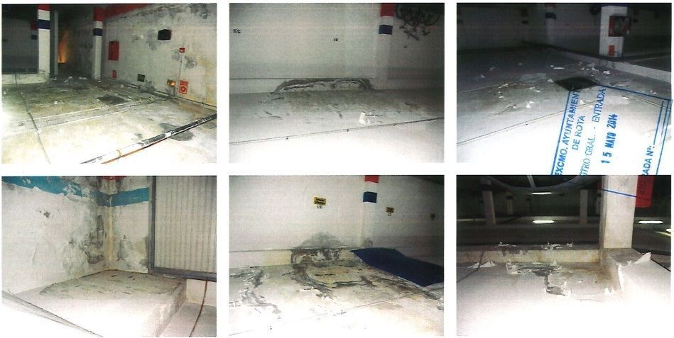 Los problemas principalmente, como apunta la administradora de las comunidades afectadas, y como recogen los informes periciales, son que la planta sótano donde se ubican las plazas de garaje se encuentran afectadas de forma generalizada por una serie de patologías como manchas de humedad en paredes y techos, caída de enfoscado, caída de pintura, oxidación de armaduras en el interior de pilares, jácenas y forjados, y grietas bajo el forjado con peligro de precipitación de las bovedillas.