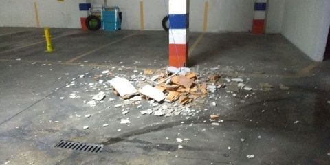 Cada vez que llueve, y la semana pasada fueron bastantes días, el agua cae en cascada en algunos puntos, provocando que se agraven las humedades, la posibilidad de desprendimientos como ya ha ocurrido, y empeoren otras patologías existentes, así como que surjan otras nuevas. Además, con las primeras gotas de agua, debido al mal estado del suelo de la plaza de La Cantera, los garajes se quedan sin luz, no funcionan los extractores, ni las puertas automáticas y saltan las alarmas. Estas averías continuas y reiterativas ocasionan constantes gastos a las comunidades ante un problema que, mientras que no se ataje desde la raíz, es decir, una actuación del Ayuntamiento en esta plaza, no se pueden arreglar desde el interior de los garajes.
