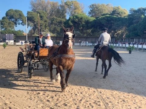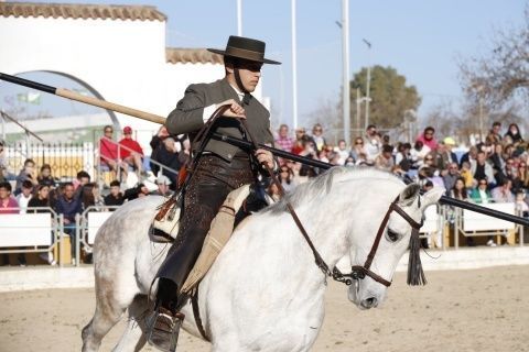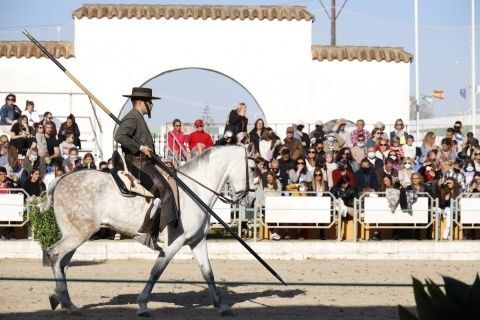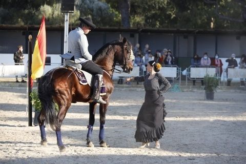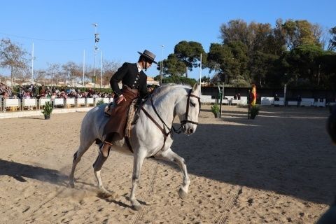 Las gradas de la escuela municipal de hípica "Francisco de Paula Ortega García" se llenaron de roteños y visitantes que no quisieron perder la oportunidad de ver en directo la destreza de varios jinetes con los caballos en la pista. Sin duda, el caballo es símbolo de parte de la cultura andaluza y en este día de los andaluces no podía faltar su presencia. También ha estado presente el flamenco porque como parte del espectáculo, el jinete Manuel Piruat guía al caballo en un baile al unísono con una bailaora.