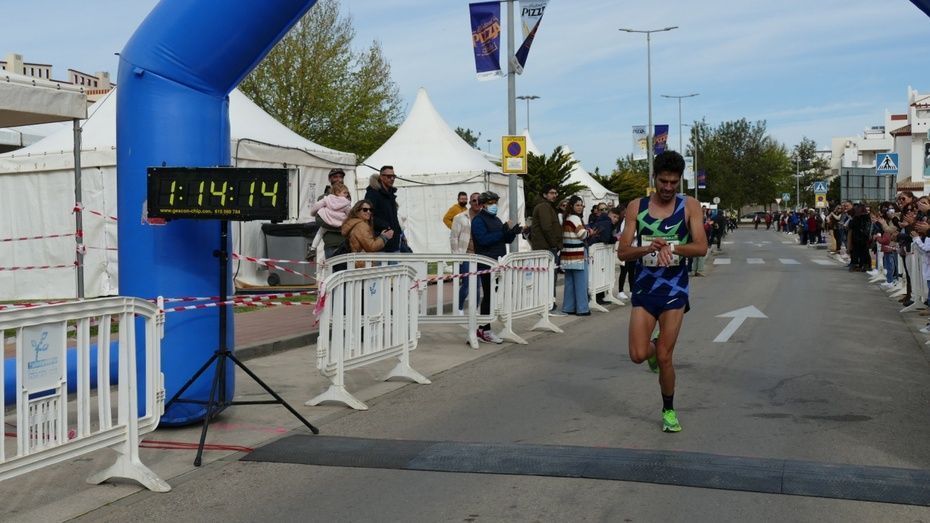 Carrera larga y muy disputada especialmente, por el independiente Sergio Mena Marcuello y Pedro Garrido Bejarano, del Club Atletismo "Villa de Rota", que se han venido pisando los talones literalmente a lo largo de todo el circuito dando emoción a la entrada en meta. Finalmente, por muy pocos segundos, el ganador de esta Media Maratón "Costa de la Luz", era Sergio Mena (1h 8' 15") que ha tenido una velocidad media de 3'14" el kilómetro, seguido de Pedro Garrido (1h 8' 32") cuya marca ha sido de 3'15" el km, y un poco después, Alberto González Quílez del CD GQ Training (1h 9' 46") entraba en tercera posición con una media de 3'19/km.